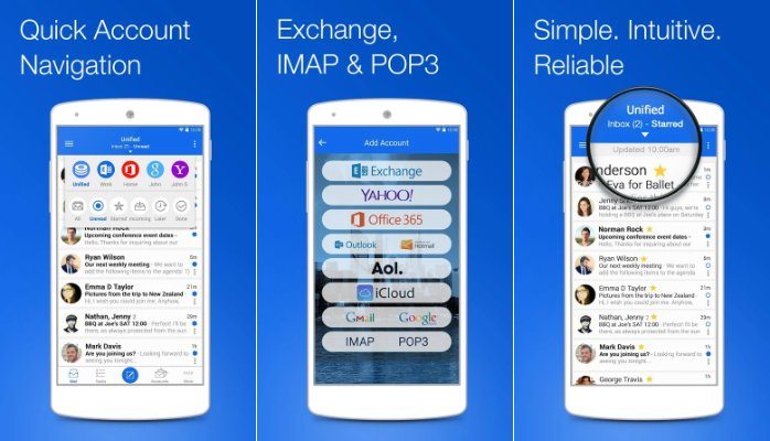 An email by the pioneers of email, AOL, it offers support for many platforms. Popular platforms like AOL, Yahoo, Gmail, Outlook, iCloud, Exchange are supported. The design is very clean and clutter free. A dashboard shows the important details while a unified mailbox allows you to check all your emails in one location.